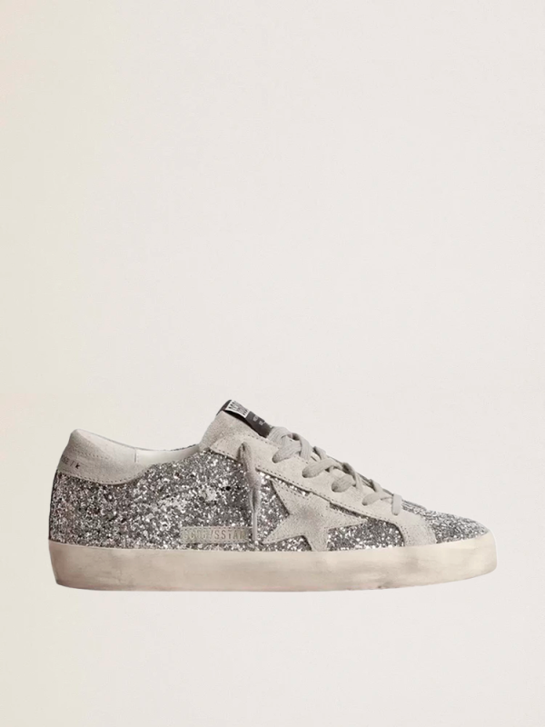 Купить Golden Goose Super-Star In Silver Glitter With Ice-Gray Suede Star