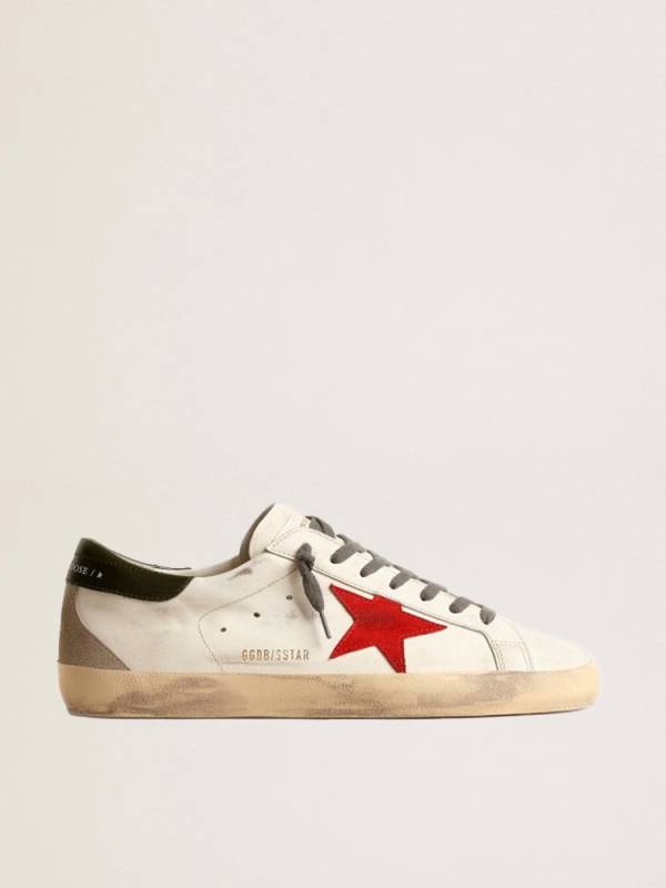 Купить Golden Goose Super-Star Red Suede Star And Green Leather Heel Tab